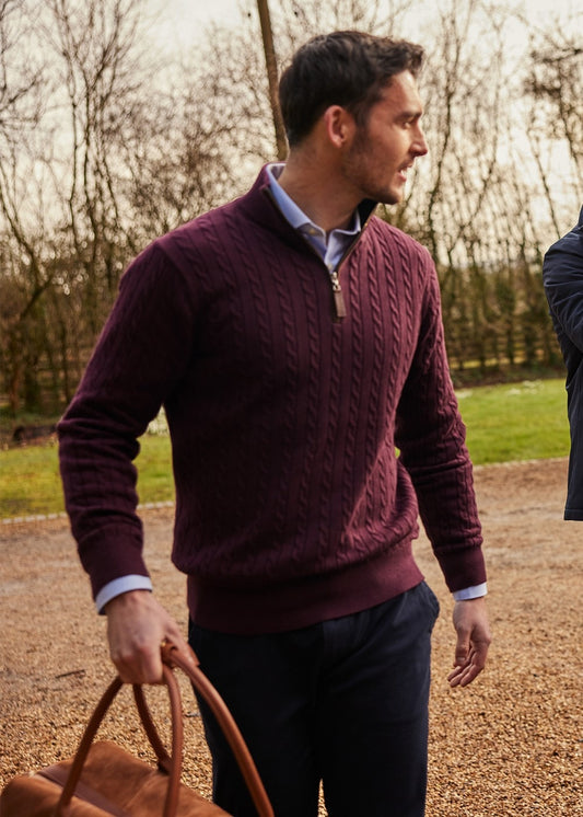 Calton Cotton Cashmere Cable 1/4 Zip Jumper