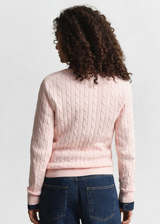 Stretch Cotton Cable V-Neck Knit