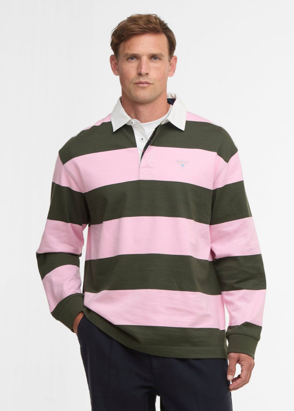 The Broome Rugby Shirt by Barbour offers a sporty look with its contrasting collar and classic striped design. Featuring long sleeves and a concealed button placket for a clean finish, it’s crafted from soft cotton jersey for all-day comfort. Subtle logo embroidery at the chest adds a refined signature touch.