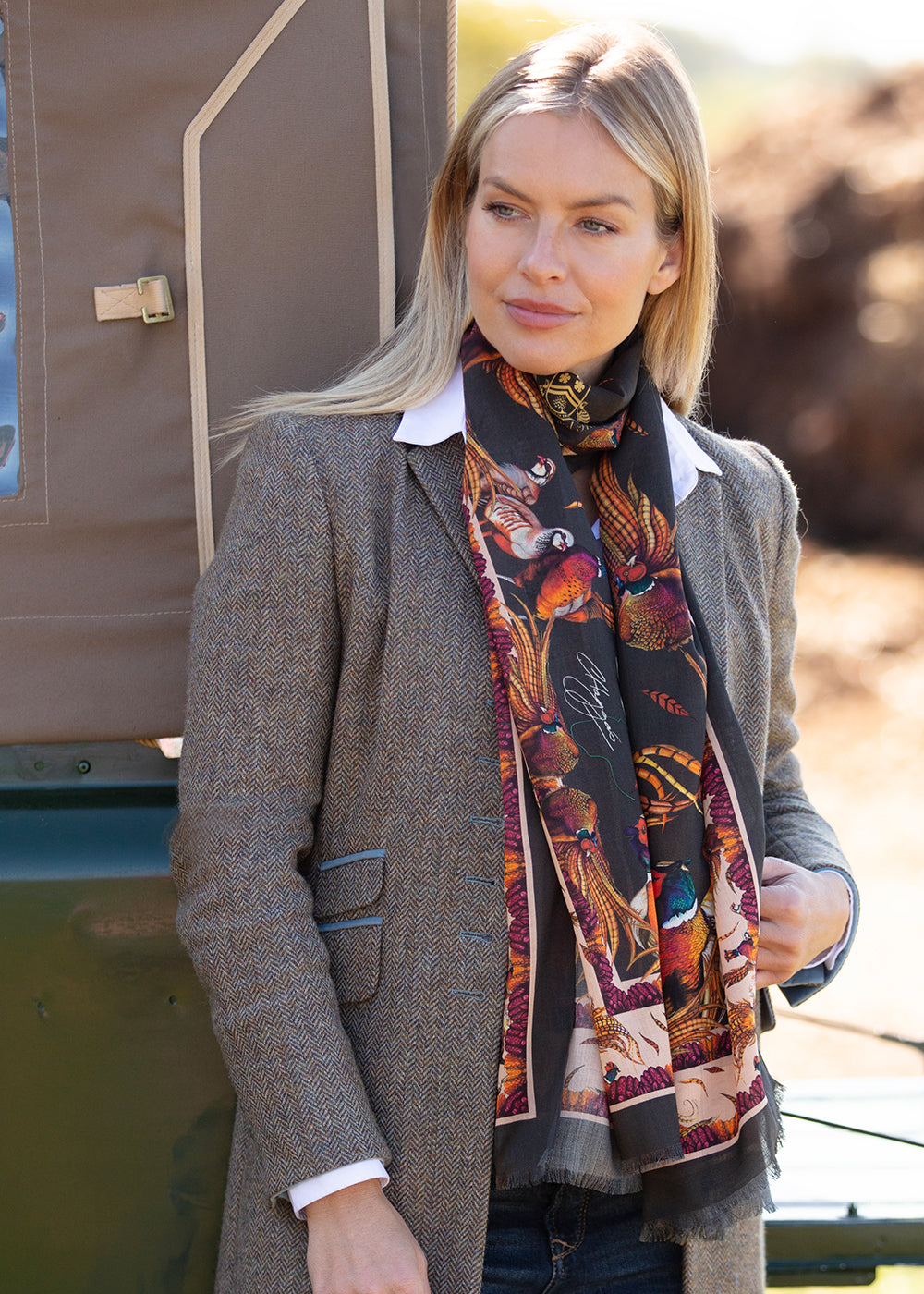 The George & Friends Wrap by Clare Haggas is a beautiful hand designed wrap. This beautiful wrap features a charismatic pheasant and his lively featured companions each illustrated with detail and affection. This stylish accessory will add that finishing touch to any outfit whilst oozing style and sophistication.