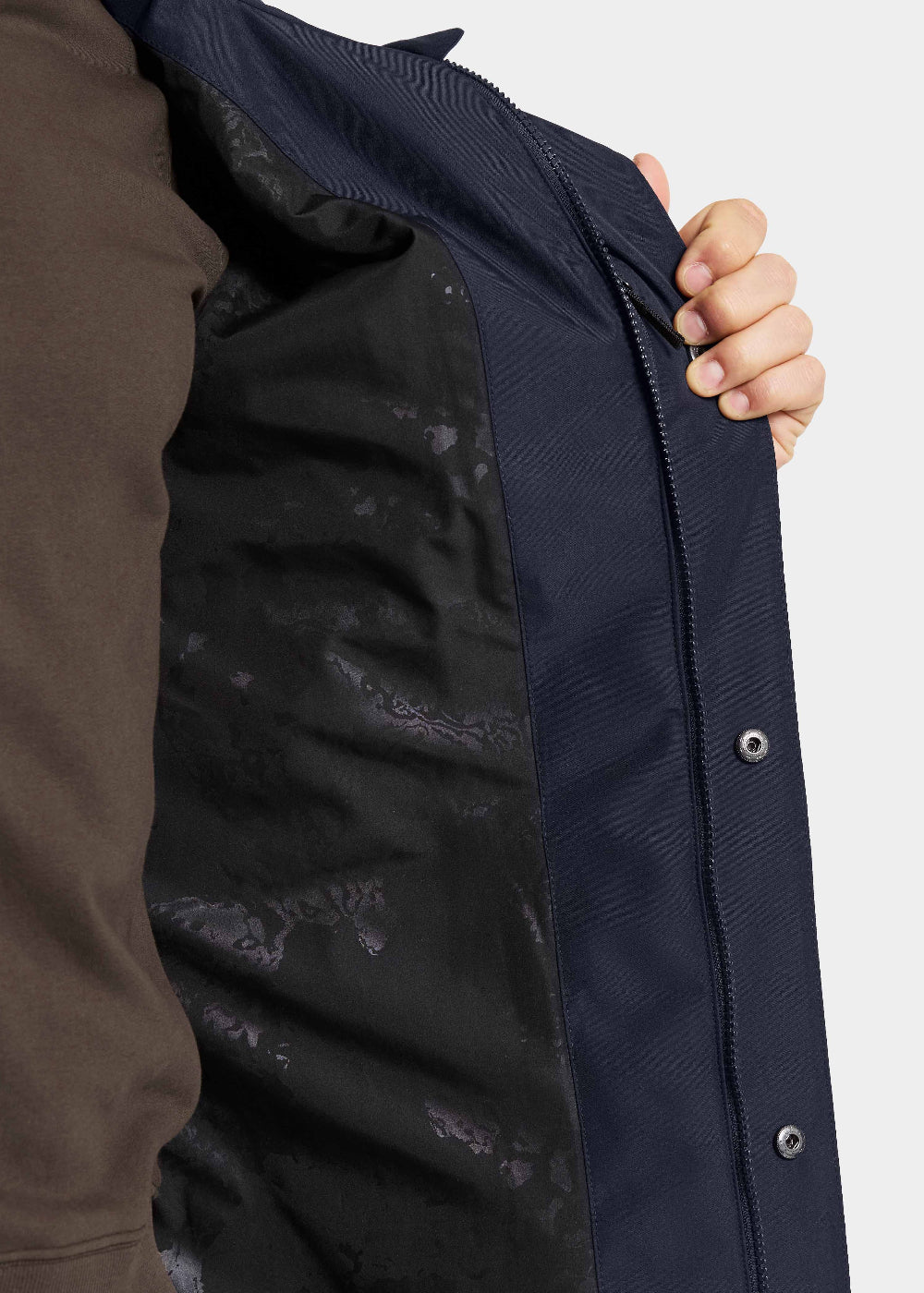 is a warm, waterproof and breathable jacket cut with a straight , cut in a relaced A-shape. The parka features a fixed and adjustable hood and a front zip protected by a placket for extra protection against the elements. Elastic cuffs provide a comfortable fit and the front pockets with button offer secure storage. This parka combines both style and functionality and is perfect for all weather conditions.