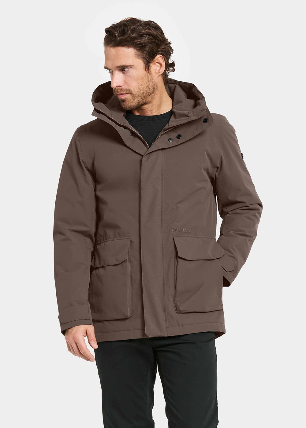 is a warm, waterproof and breathable jacket cut with a straight , cut in a relaced A-shape. The parka features a fixed and adjustable hood and a front zip protected by a placket for extra protection against the elements. Elastic cuffs provide a comfortable fit and the front pockets with button offer secure storage. This parka combines both style and functionality and is perfect for all weather conditions.