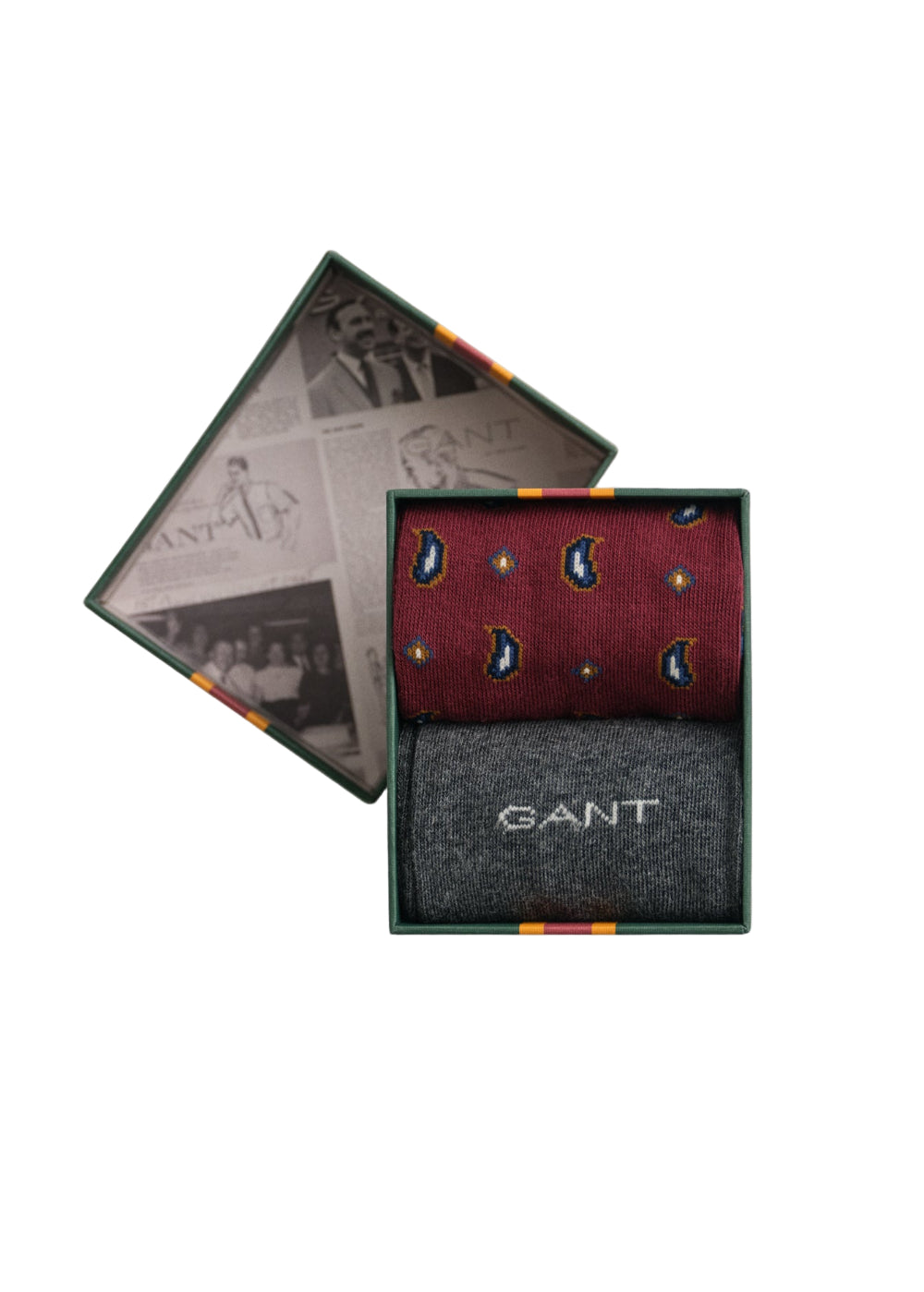 Gant's Paisley 2 Pack socks are presented in a gift box, this 2-pack of socks is made from soft combed cotton and designed for a comfortable mid-calf height. The set includes one solid pair and one featuring a subtle paisley pattern. Both pairs are finished with an intarsia Gant logo, placed either at the ankle or footbed for a refined branded touch.