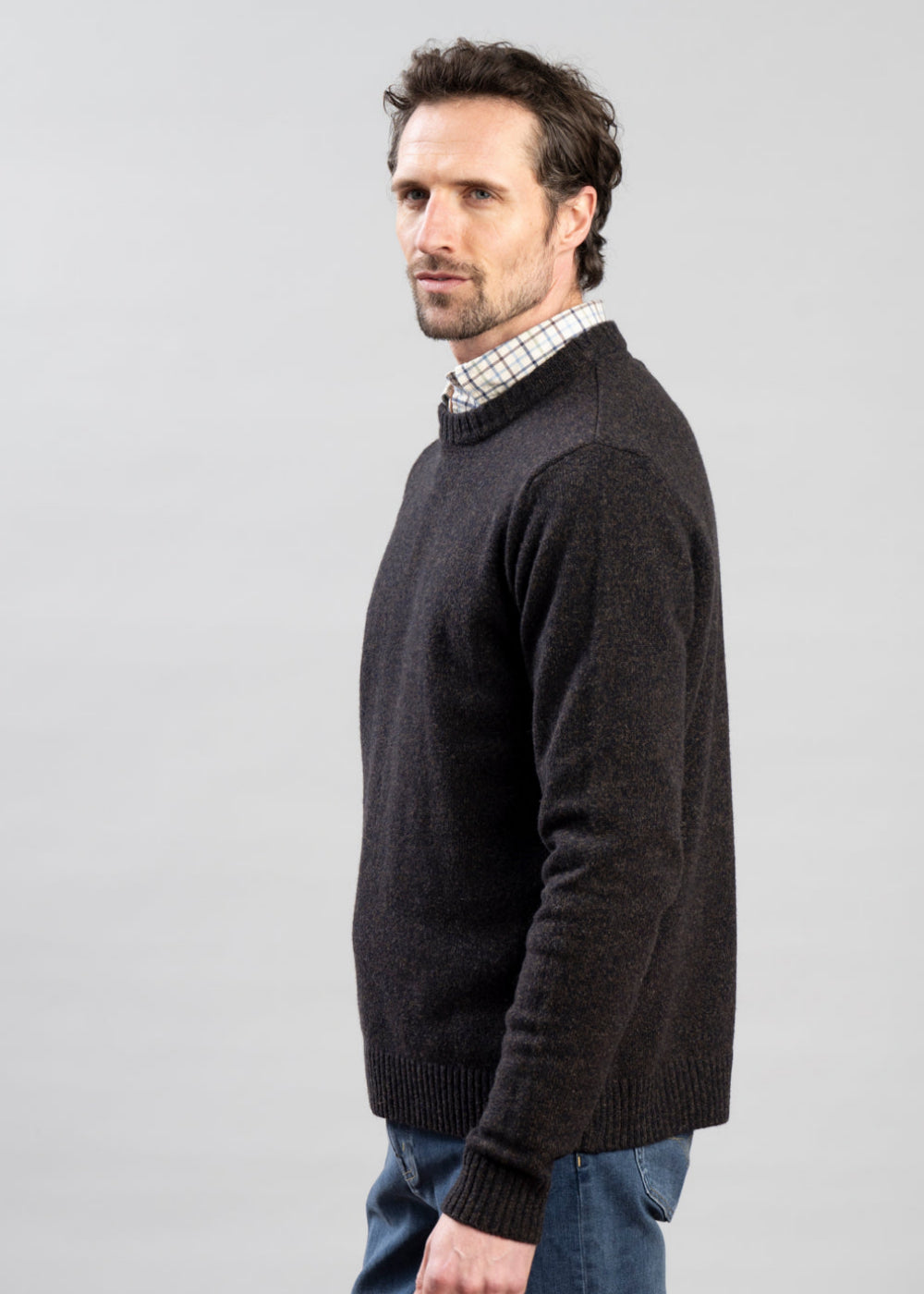 Charles Crew Sweater - Brown Melange and Navy