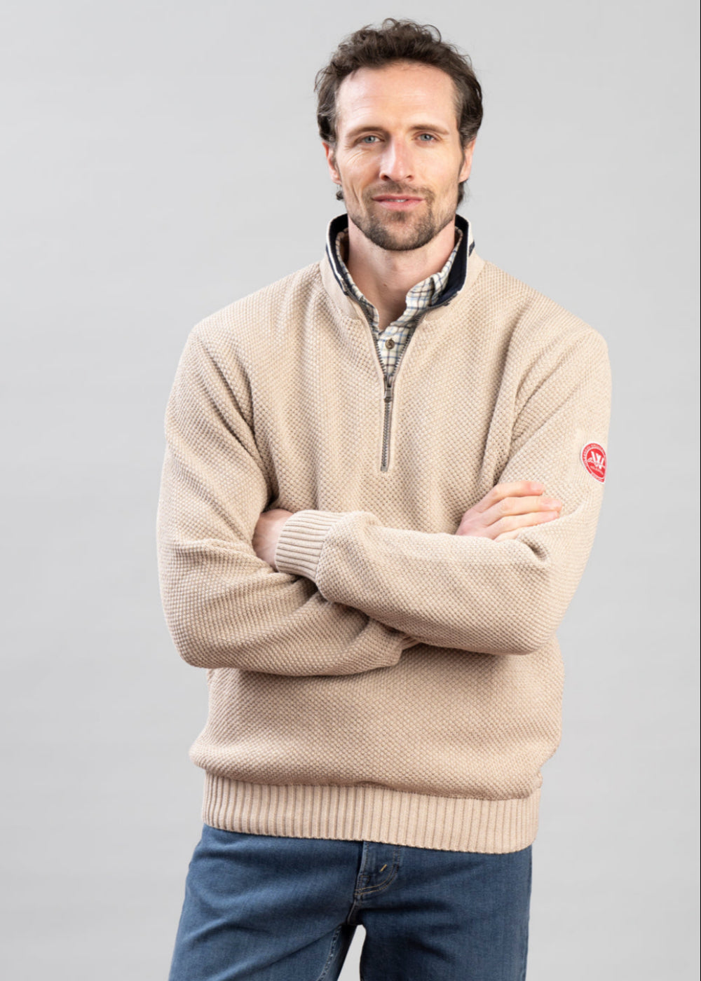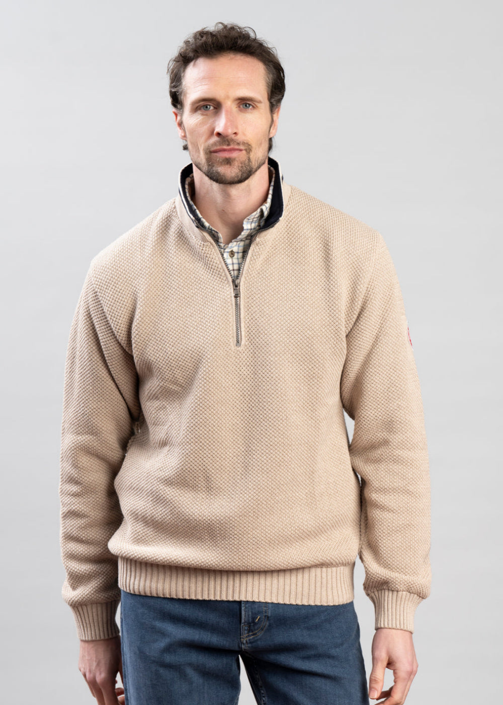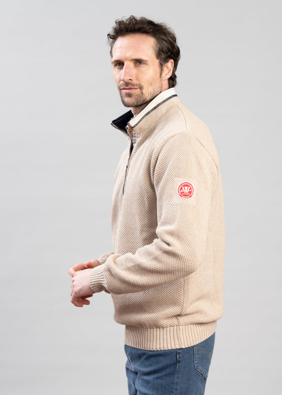 The Holebrook Classic Windproof Sweater is a cosy and versatile piece for year-round warmth. Knitted in a stylish moss stitch, it features a high neck with a 1/2 zip for temperature control. Made from 100% cotton, it has a windproof lining and a contrasting collar for added elegance. Perfect for layering, this sweater is an essential for both casual days and outdoor activities.