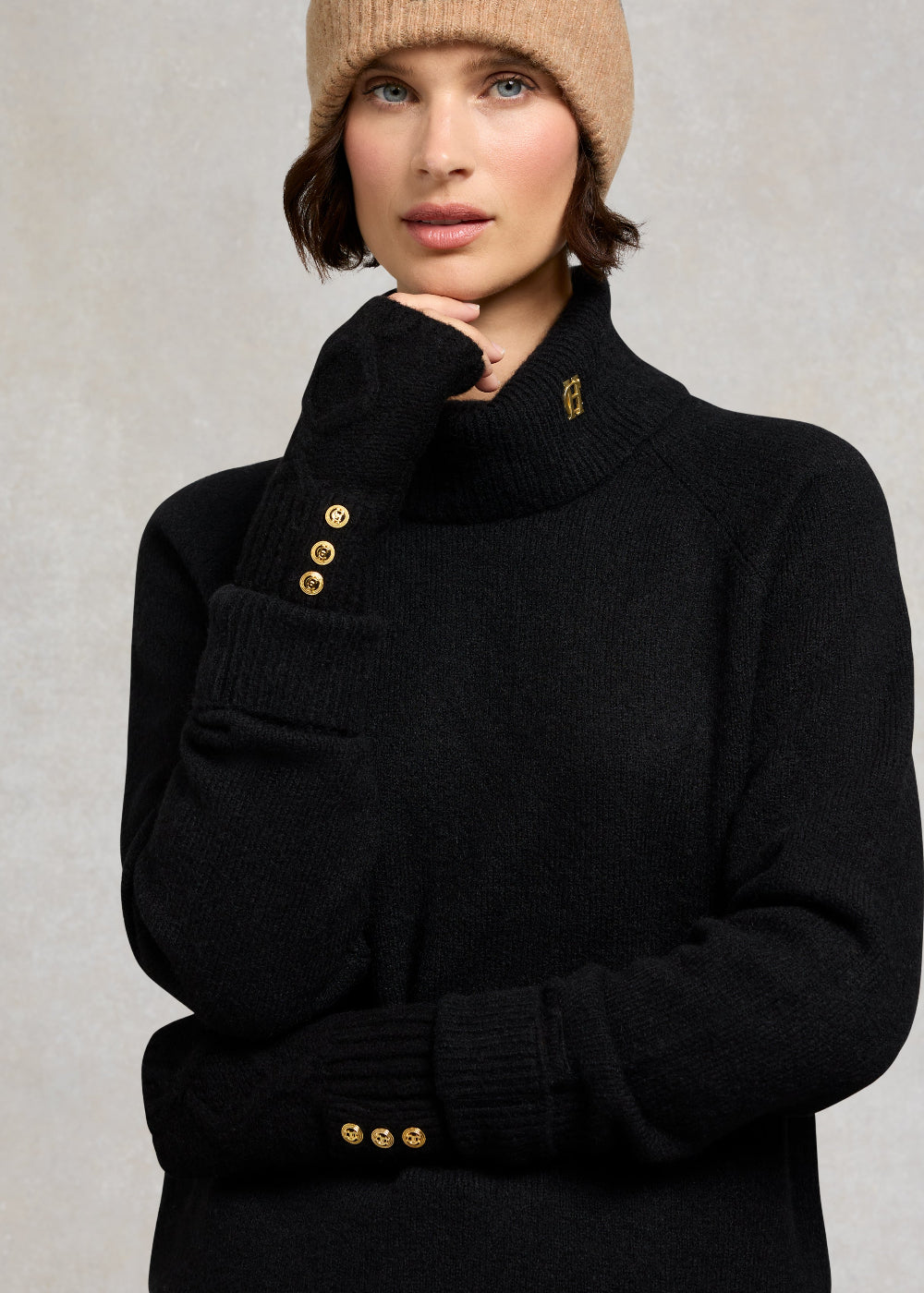 The Holland Cooper Sloane Fingerless Gloves are crafted from a lofty, thick yarn for added warmth and comfort. Finished with subtle gold detailing at the cuff, these gloves feel luxurious. The perfect cold-weather accessory for effortless style on the go.