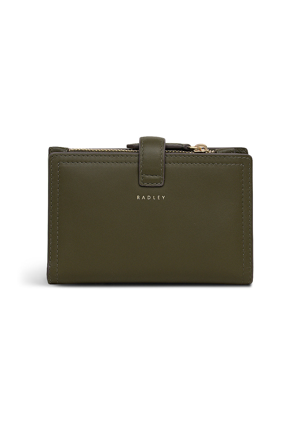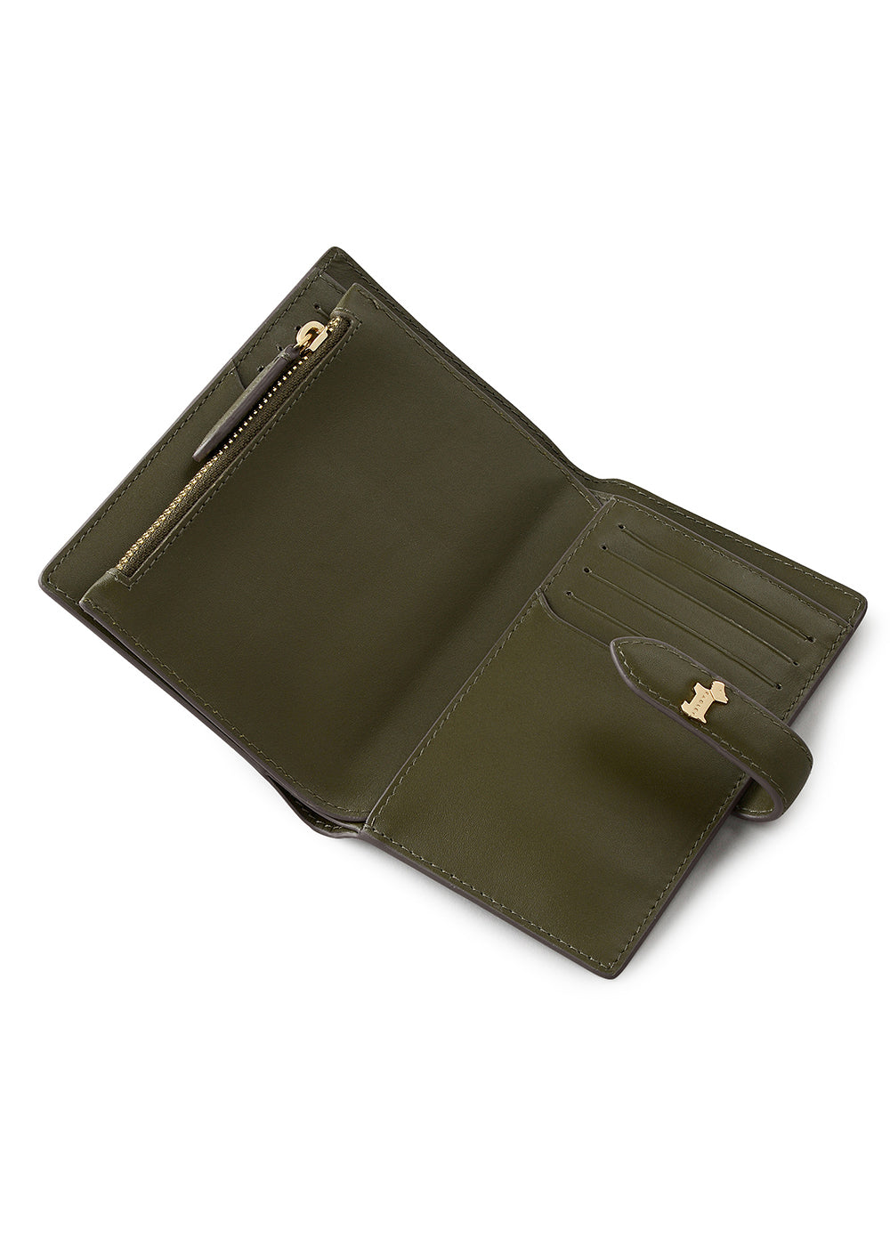 The Radley Willis Street Bifold purse is crafted from full grained leather and features a press stud tab. on opening the bifold the interior reveals a host of functional interiors allowing space for both cards and coins.