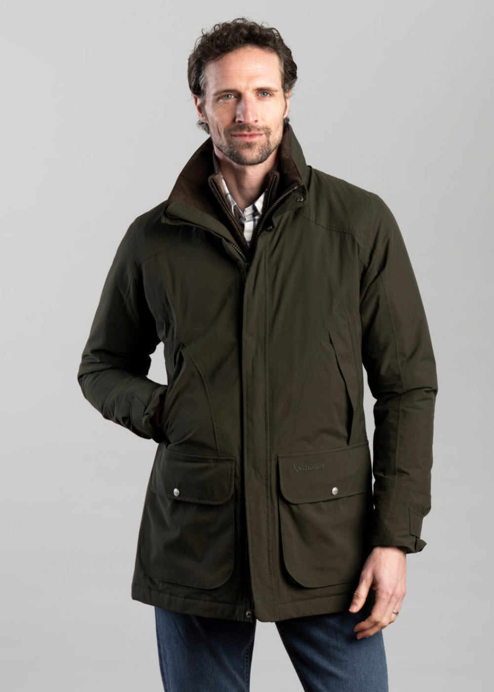 The Schöffel Snipe Coat is a specialist shooting coat made from 100% waterproof and windproof Venturi® 2-layer laminate fabric. This coat is both breathable and durable, featuring a lightweight insulation and fleece lined hand warming pockets, as well as a detachable hood and large below cartridge pockets.