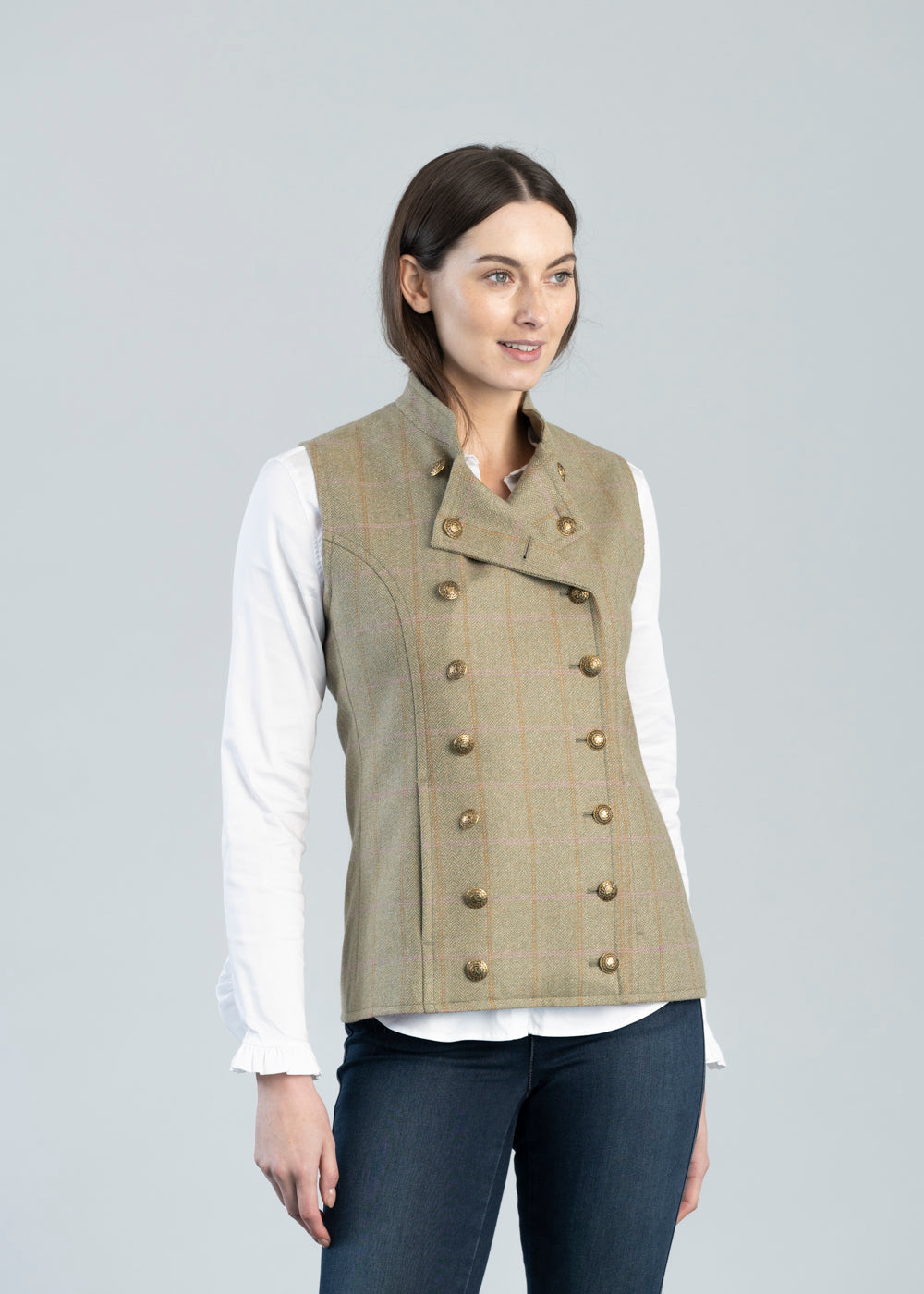 The Knightley Waistcoat by Taylor and Twill is a beautifully tailored piece crafted from premium Lovat Mill Tweed, woven locally in the Scottish Borders - a true testament to quality and heritage. Inspired by classic pirate styling, this versatile waistcoat can be worn open or closed and styled with a variety of outfits for effortlessly chic looks. The longer length and flattering silhouette are complemented by refined details including a squared hem, tonal buttons, and a contrasting lining. Pair it with trousers, jeans, or a skirt for a sophisticated, polished finish. A timeless wardrobe staple you'll reach for again and again.