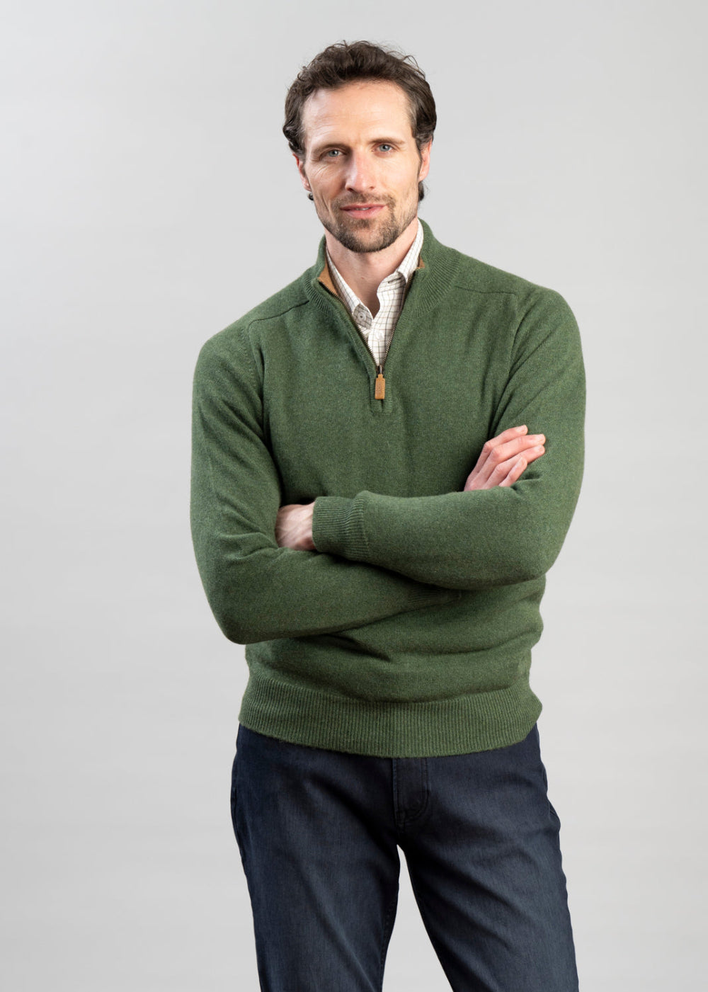 William Lockie's Cashmere 2 Ply Zip Neck Sweater is knitted in Hawick, home of luxury knitwear. This sweater is made on a bespoke basis for A Hume and is unavailable elsewhere. The cashmere used by William Lockie is combed from the fine undercoat of Chinese and Mongolian goats and spun into yarn by British spinners Z. Hinchcliffe in Yorkshire and Todd & Duncan in Kinross. It is then knitted at a tight tension on traditional frames.
