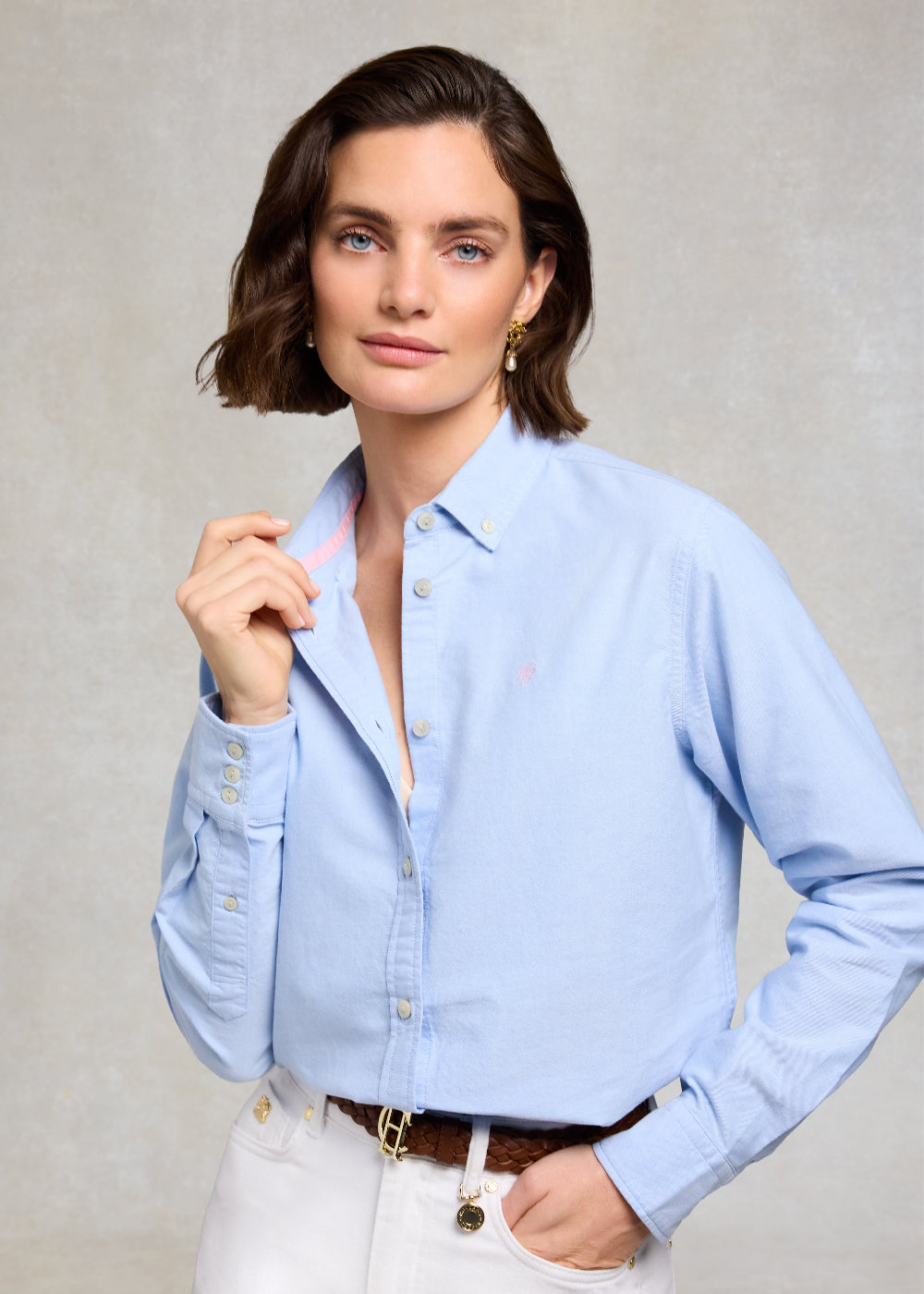 Holland Cooper's Oxford Shirt is a timeless, versatile, and effortlessly polished making it the ideal choice for warmer months. Designed to elevate your everyday style, it features a classic button-down collar and traditional button-through front, blending heritage charm with a contemporary silhouette.