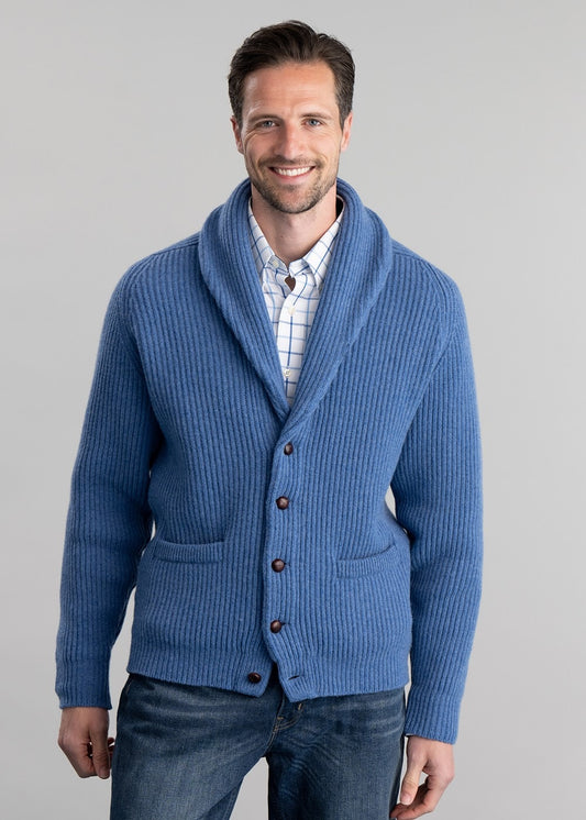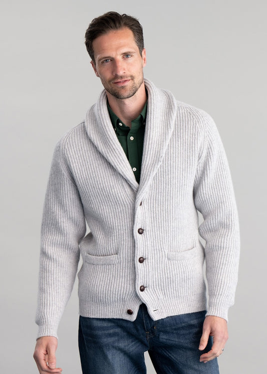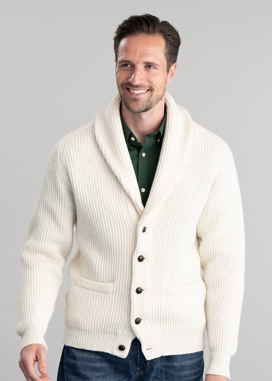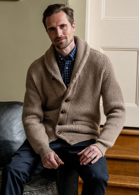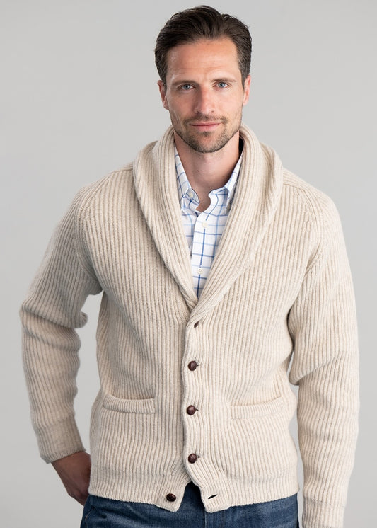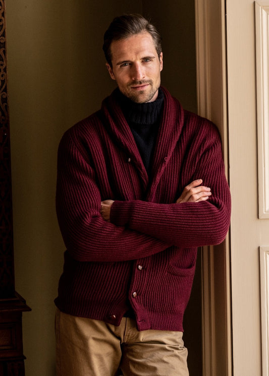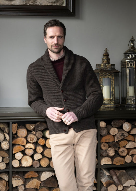 The William Lockie Lambswool Windsor Shawl Jacket is a refined men's knitwear essential, crafted from the finest lambswool for supreme softness and warmth.